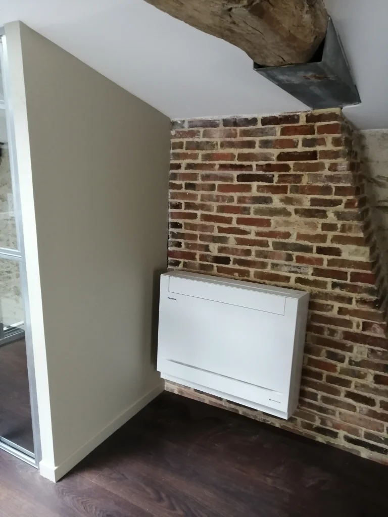 La console se présente plutôt sous l’aspect d’un radiateur. Placé en bas du mur, il offre la plupart du temps l’avantage de pouvoir souffler par le haut ou le bas. L’accès aux filtres ne nécessite pas d’escabeau contrairement au split mural.