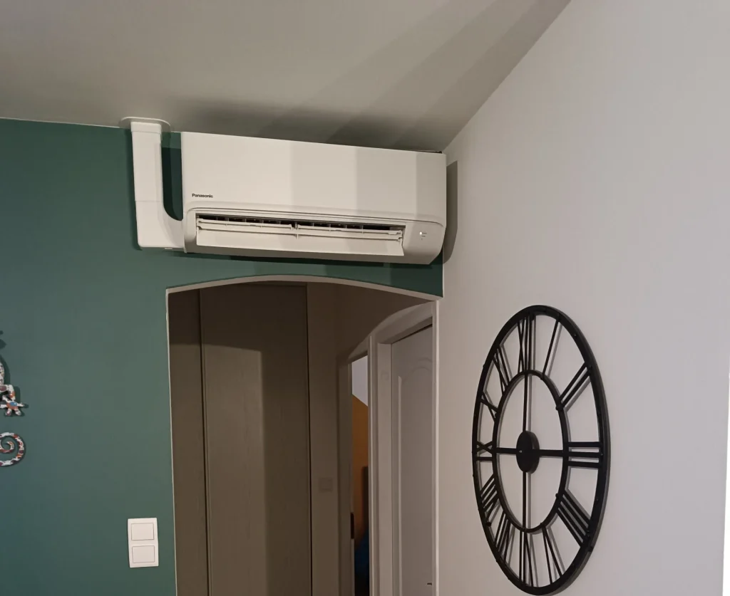 Le split mural est le système de diffusion le plus connu et le moins cher en climatisation. Fixé en haut du mur, il reste discret et ne prend pas de place dans l’aménagement de votre maison. Il est facile à raccorder discrètement en passant par les combles. Il existe avec de nombreux designs et couleurs pour s’adapter à votre pièce.